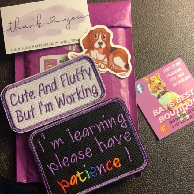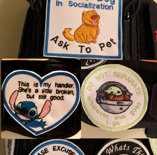 I purchased this set along with a Minnie Mouse set and absolutely love them! My pup looks cute and professional when we go out. Thank you for making such beautiful patches! We love them and will definitely be buying from this shop again! -